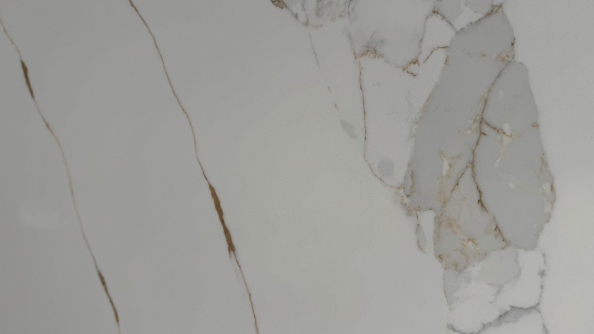 iStone Calacatta Borghini Zero Silica features classic soft grey veining on a white base, delivering a timeless stone look suited to both residential and commercial applications.