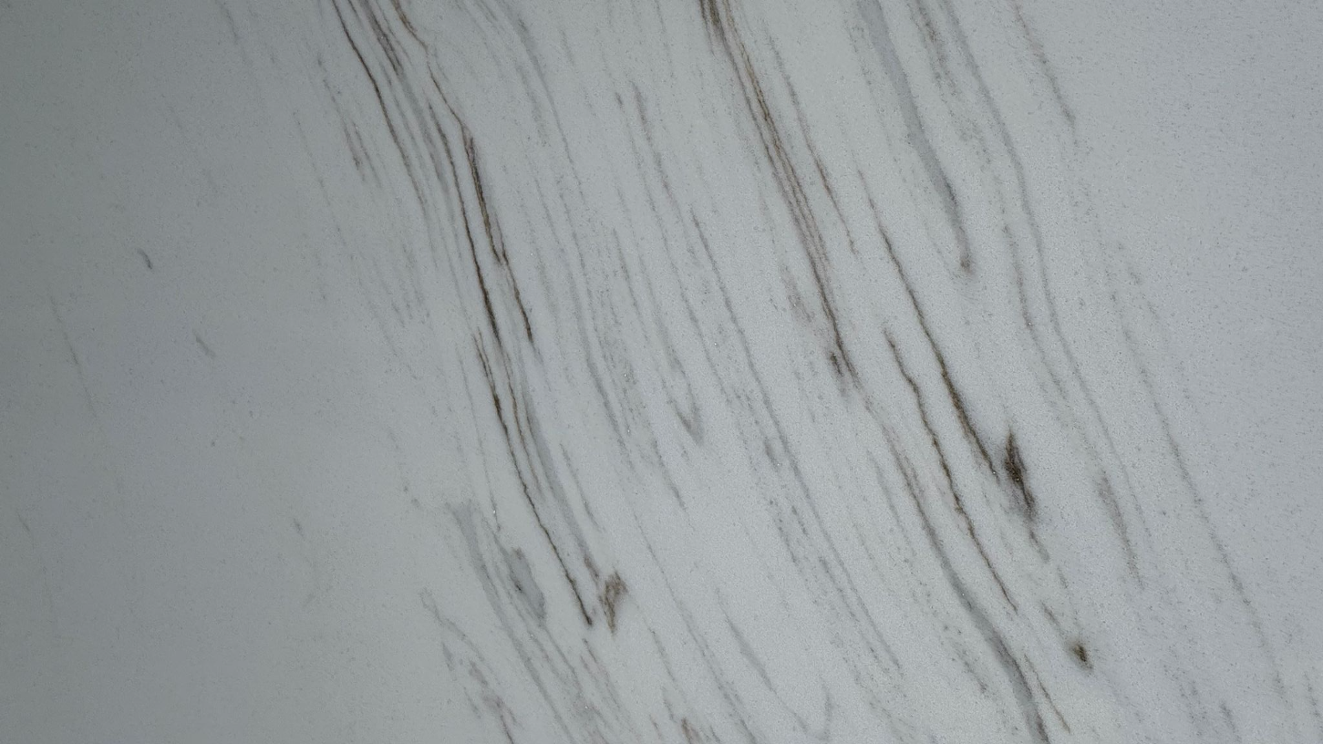 iStone Calacatta Caldia Zero Silica is a quartz very similar to the marble quarried in the Apuan Alps outside of Carrara, Italy, this brecciated marble’s milky-white clasts are suspended in a grey-taupe background.