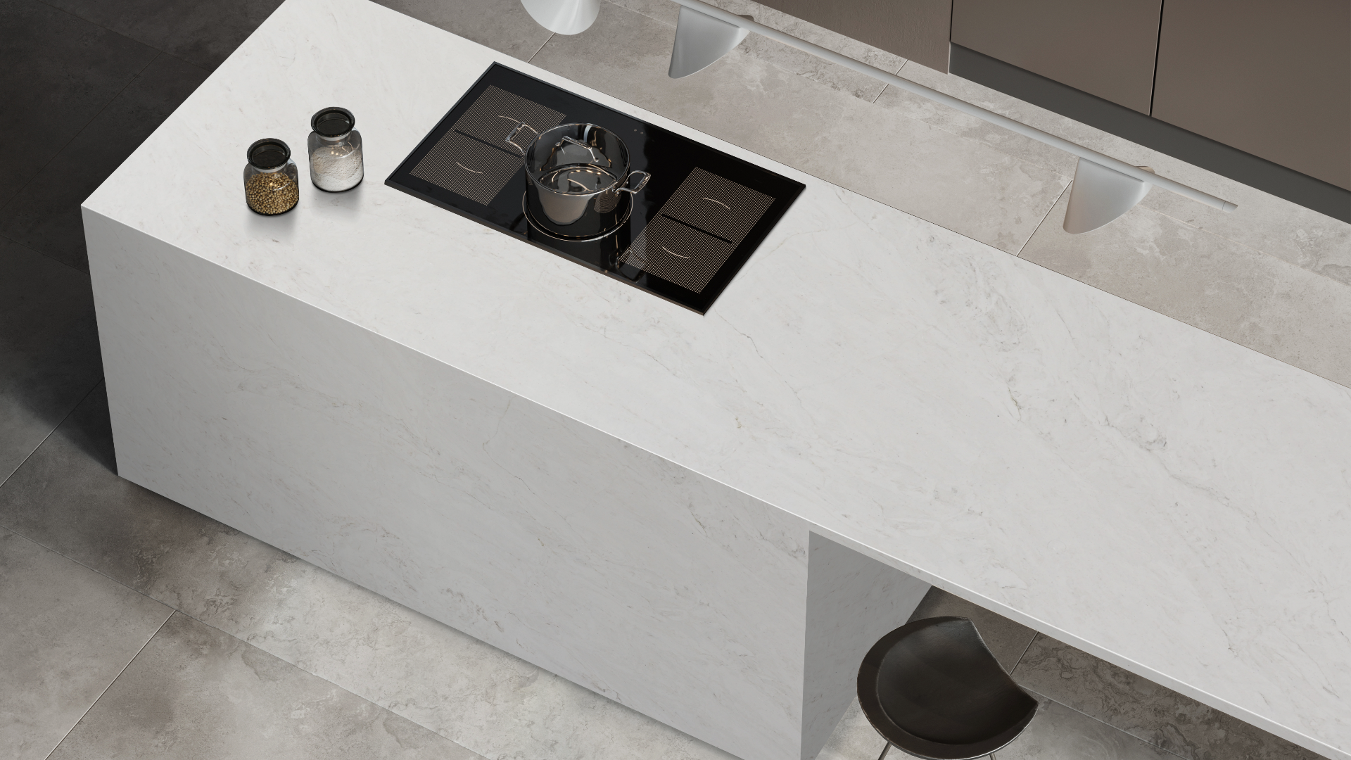 iStone Sand Storm Zero Silica Featuring dramatic, flowing veining on a crisp white base, iStone Sand Storm Zero Silica delivers a bold yet refined statement for contemporary interiors.